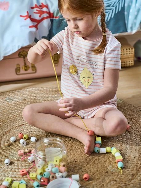 Parfait pour amuser les petits et développer leur dextérité, ce baril contient 85 perles en bois aux couleurs très tendance ! Les enfants pourront s’amuser à créer de jolis colliers tout en laissant libre cours à leur imagination !