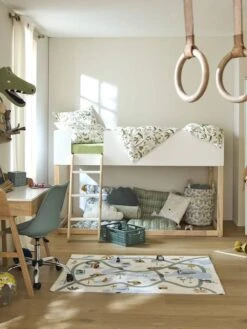 Lit Enfant Mi-hauteur XL Avec Rangements LIGNE PASSE-PASSE Blanc – Gris – Vertbaudet